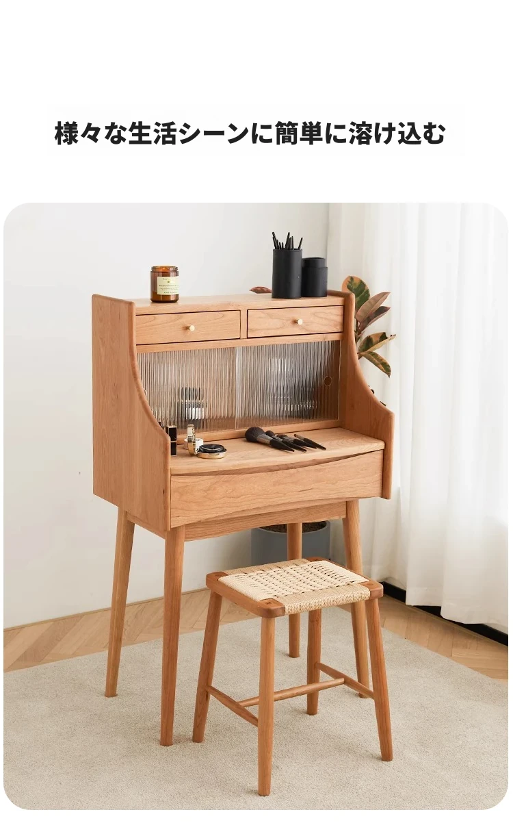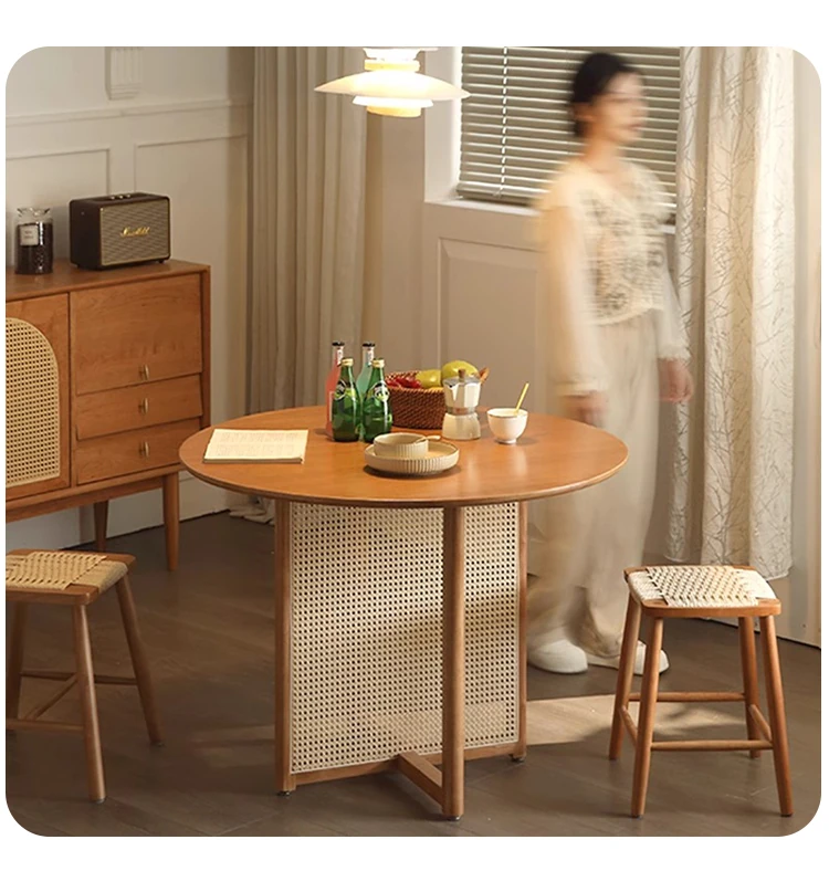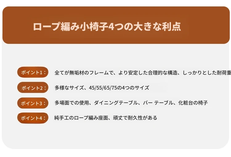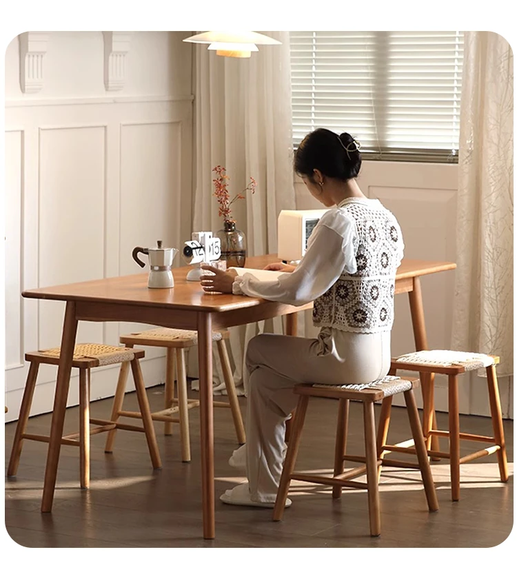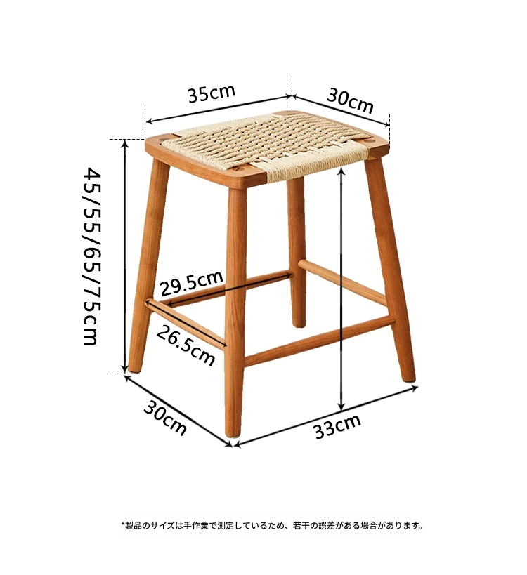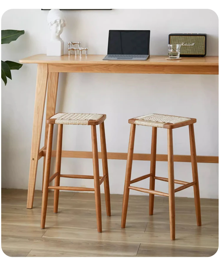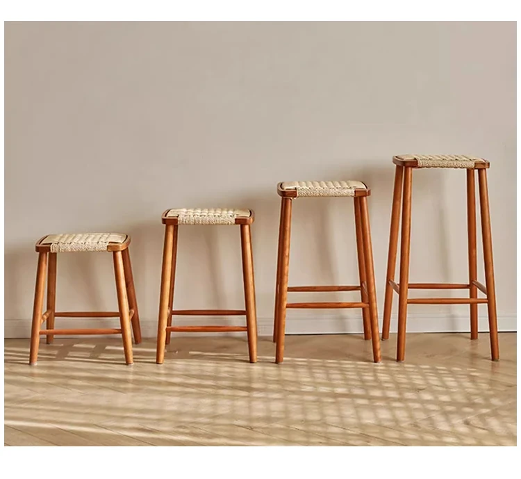 北欧風チェリーウッドのロープ編みミニスツール - シンプルでスタイリッシュな和風ドレッシングチェア、籐編みの靴替えスツールやメイクアップスツールとしても最適!