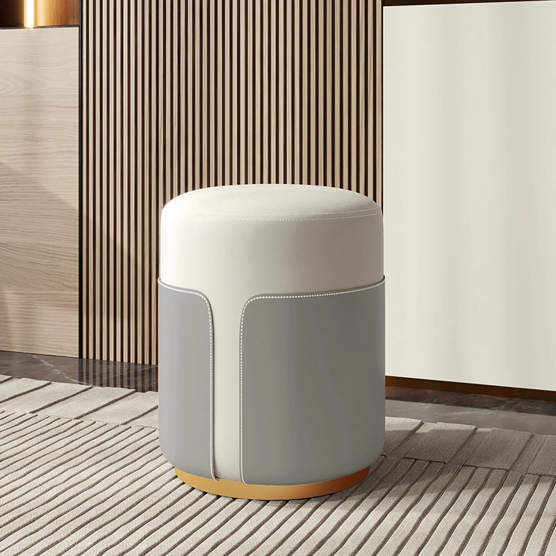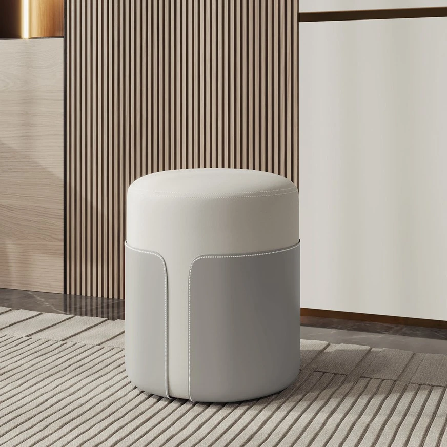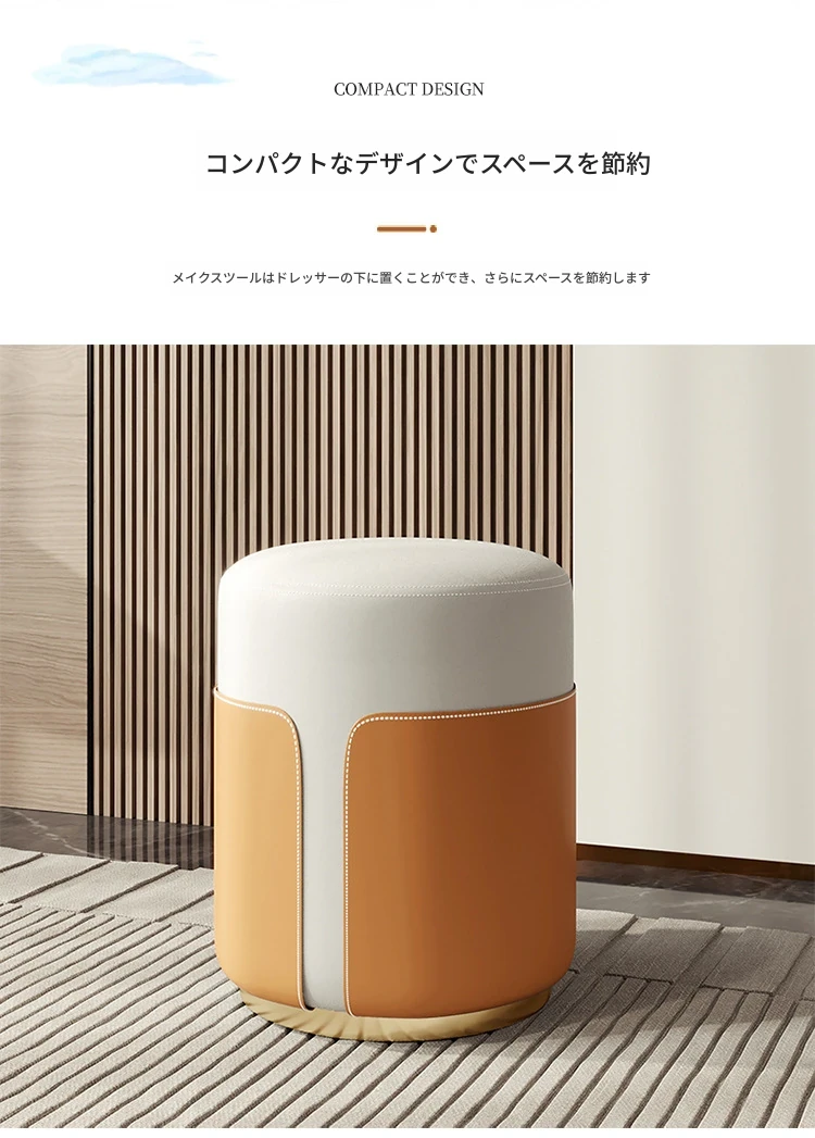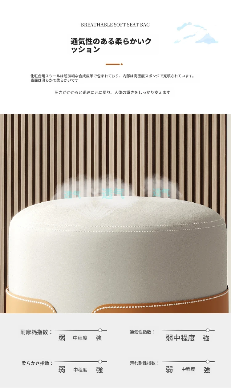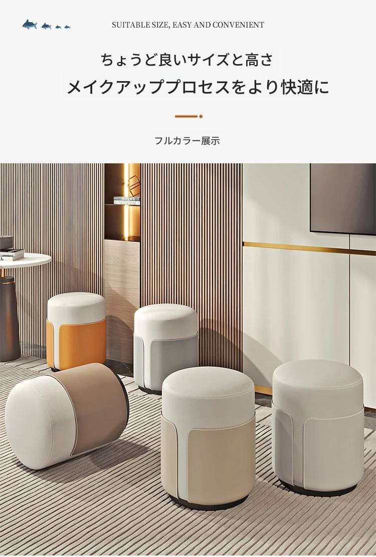 北欧スタイルの化粧台スツール|多機能な家庭用シューズベンチ|リビングやサロンにぴったりのラウンドスツール|高級感ある合成皮革製|快適な座り心地でおしゃれな空間を演出!