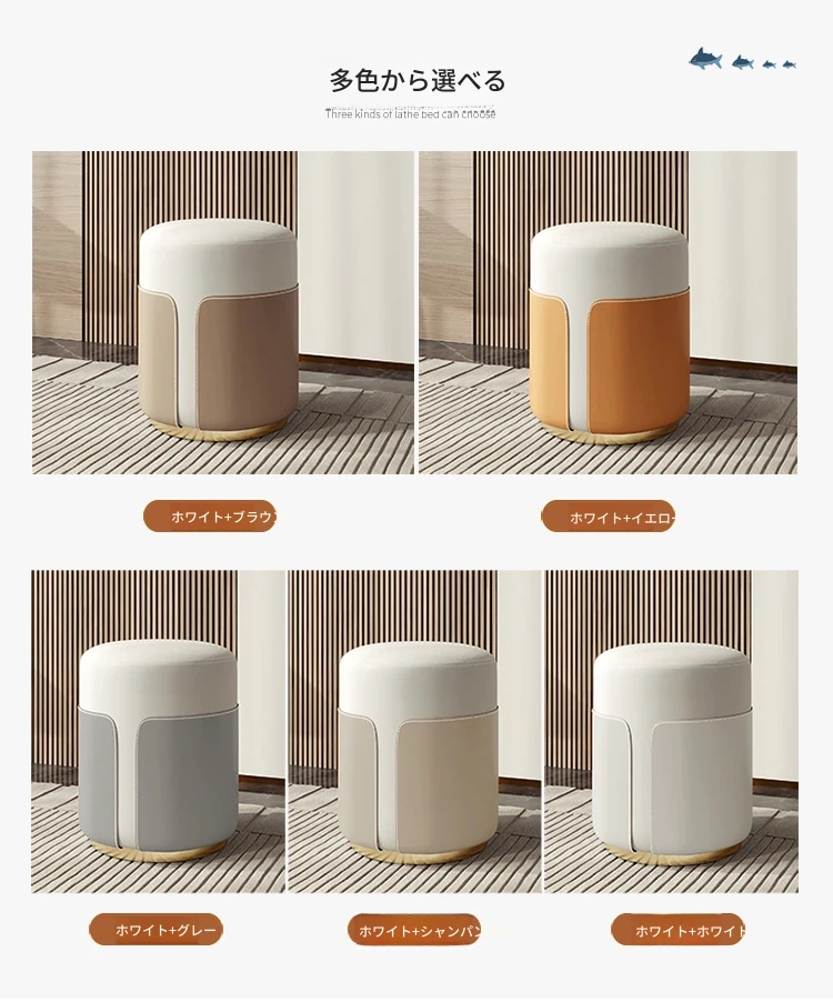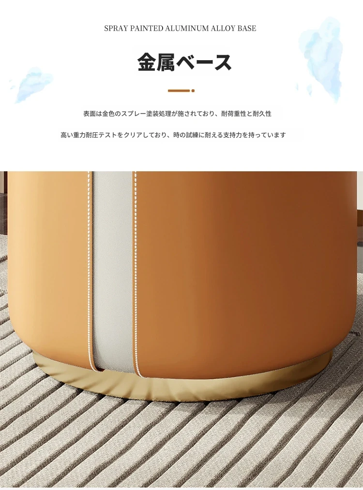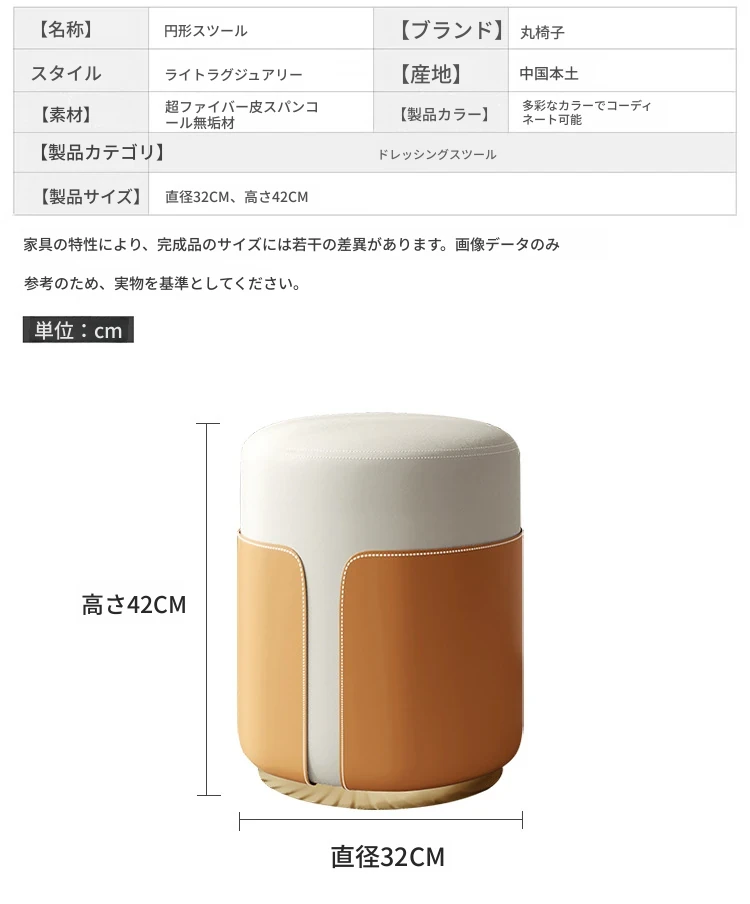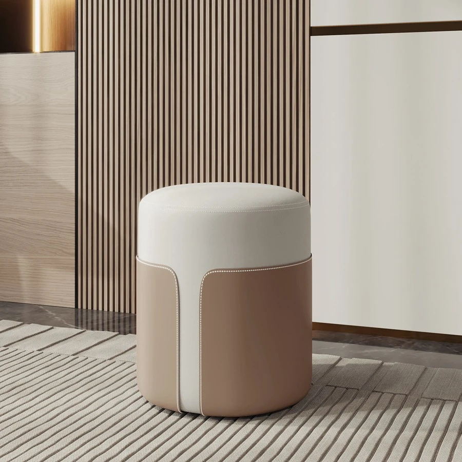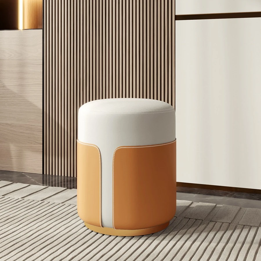 北欧スタイルの化粧台スツール|多機能な家庭用シューズベンチ|リビングやサロンにぴったりのラウンドスツール|高級感ある合成皮革製|快適な座り心地でおしゃれな空間を演出!