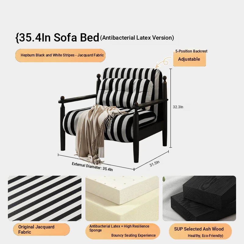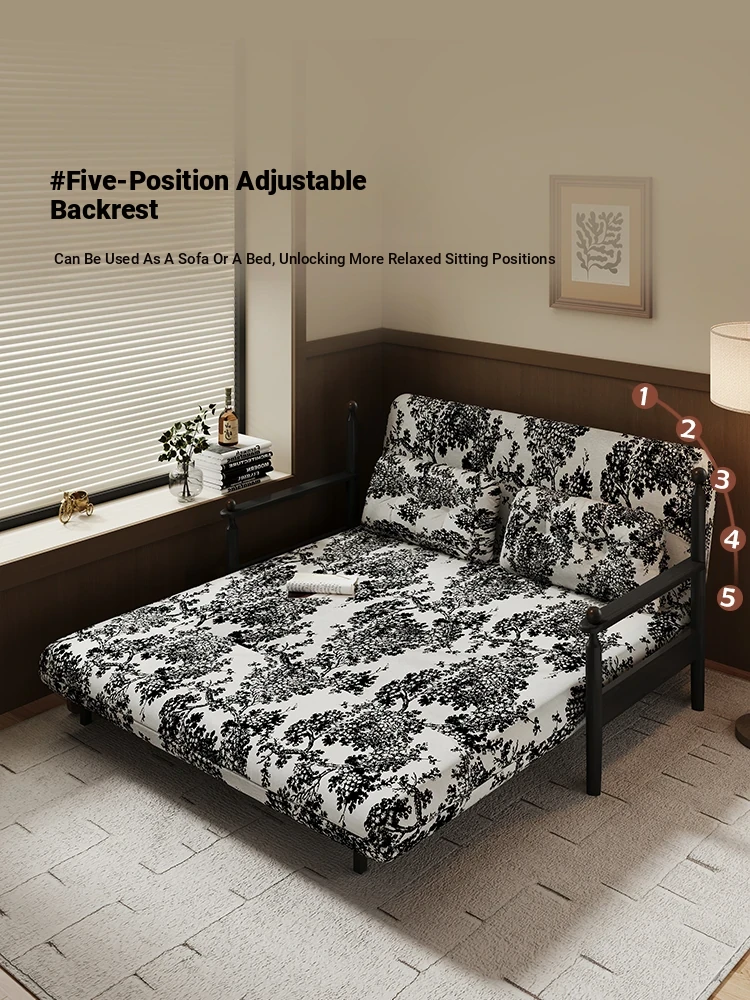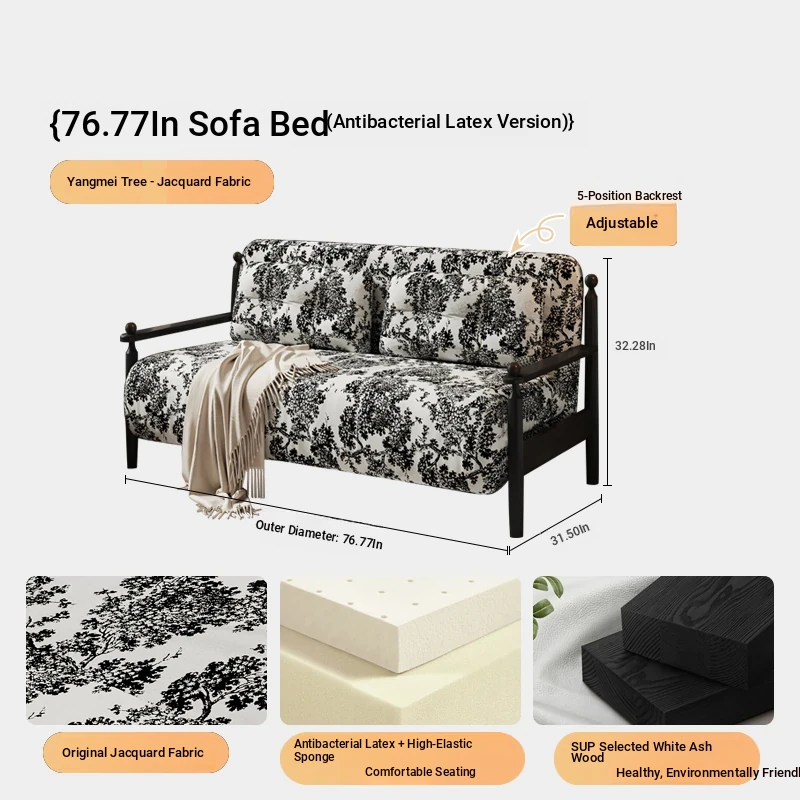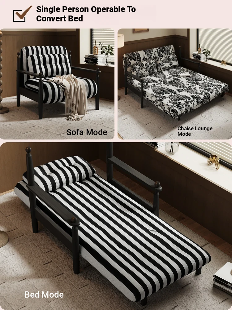 Retro Solid Wood Sofa Bed - Folding Dual-Use, Perfect for Small Spaces, Multifunctional Double/Single Bed for Living Room, 2025 New Arrival in Vintage Style