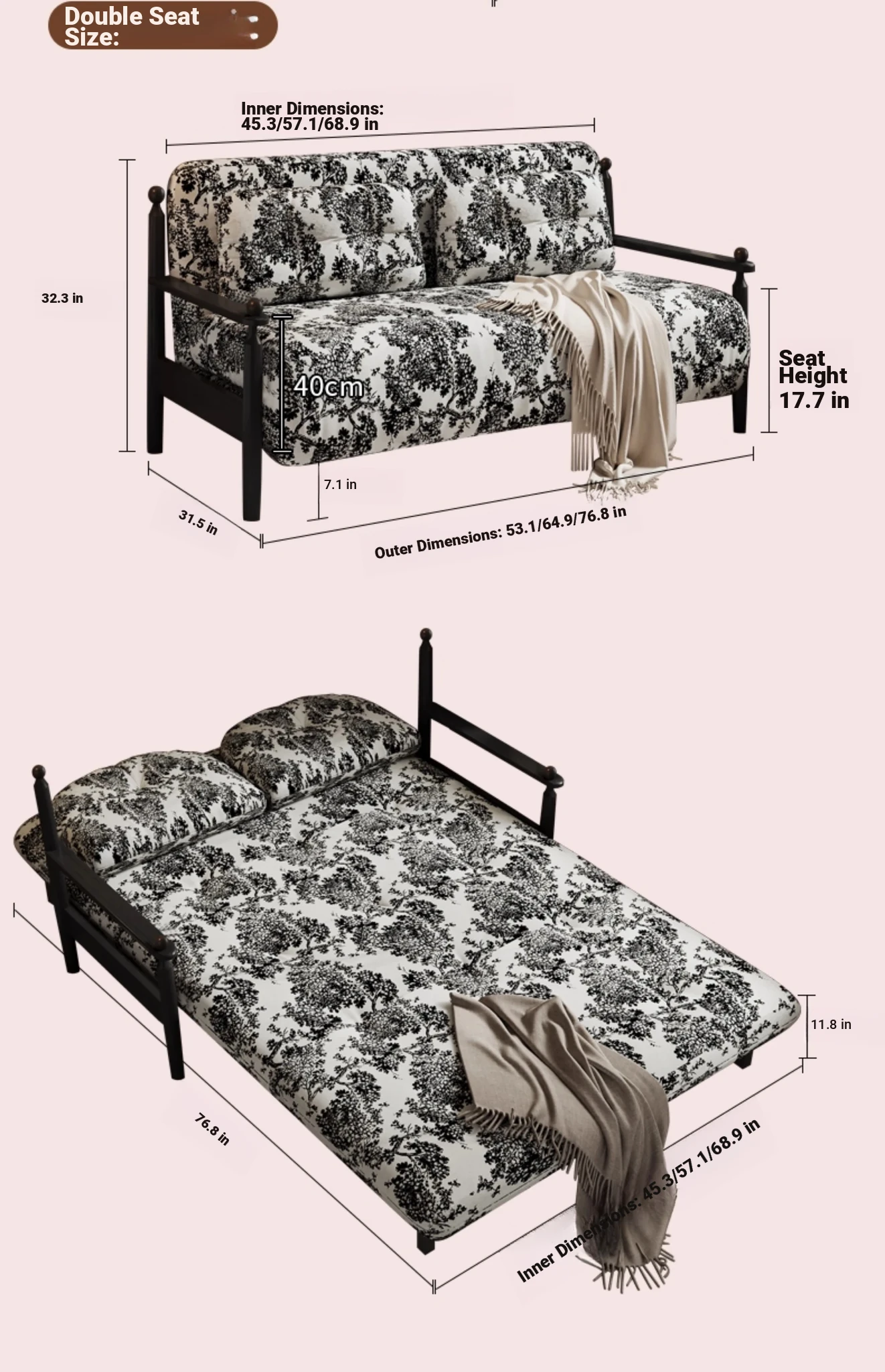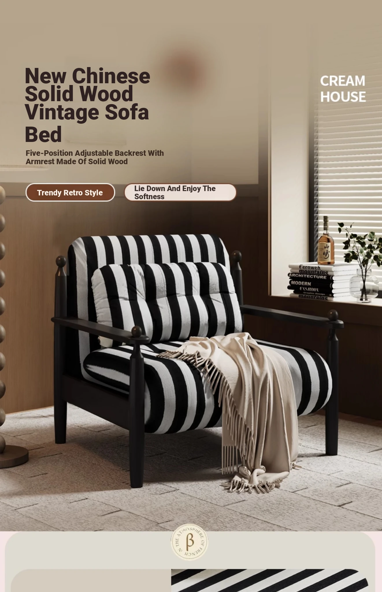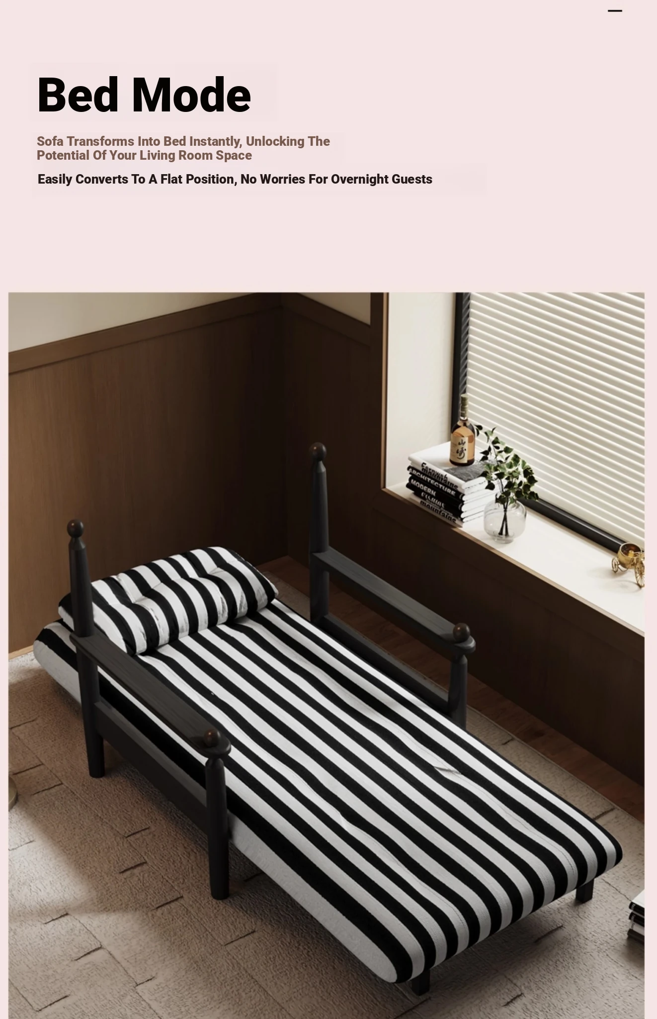 Retro Solid Wood Sofa Bed - Folding Dual-Use, Perfect for Small Spaces, Multifunctional Double/Single Bed for Living Room, 2025 New Arrival in Vintage Style