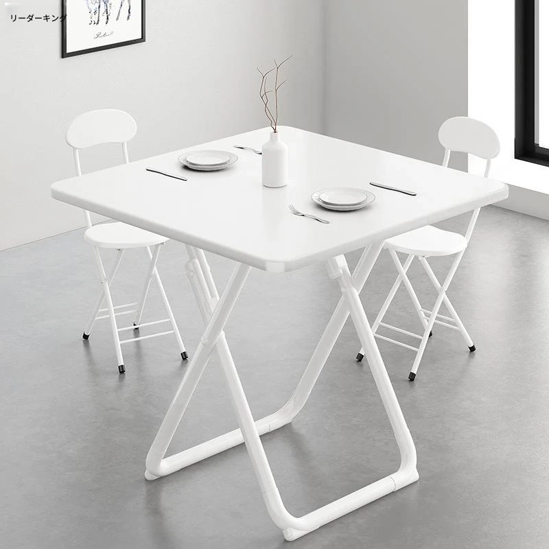 多機能折りたたみテーブルセット - シンプルでスタイリッシュなデザイン、ベッドルームにも最適!椅子とスツール付きで、手軽に食事が楽しめる便利なアイテム。収納も簡単で、空間を有効活用できます!