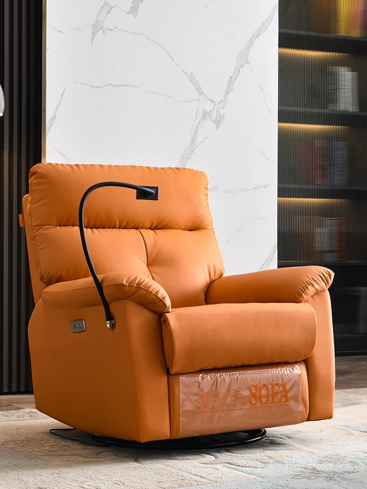Deluxe Space Capsule Single Sofa - Lazy Recliner Chair for Living Room, Electric Lounge Chair with Functional Leather Armrests and Rocking Design. Perfect for Comfort and Style!