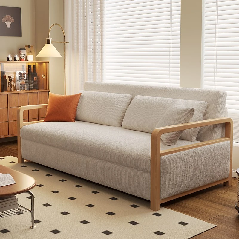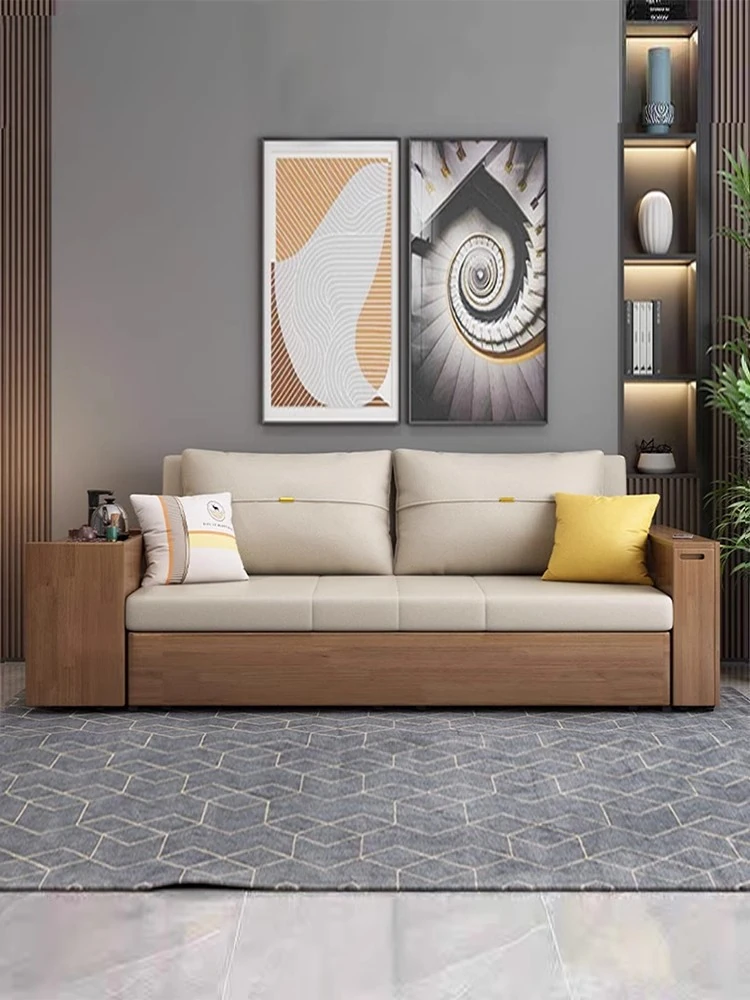 Modern Minimalist Solid Wood Sofa Bed - Versatile Folding Design for Small Spaces, Ideal for Study or Living Room, New Chinese Style 2024 Edition