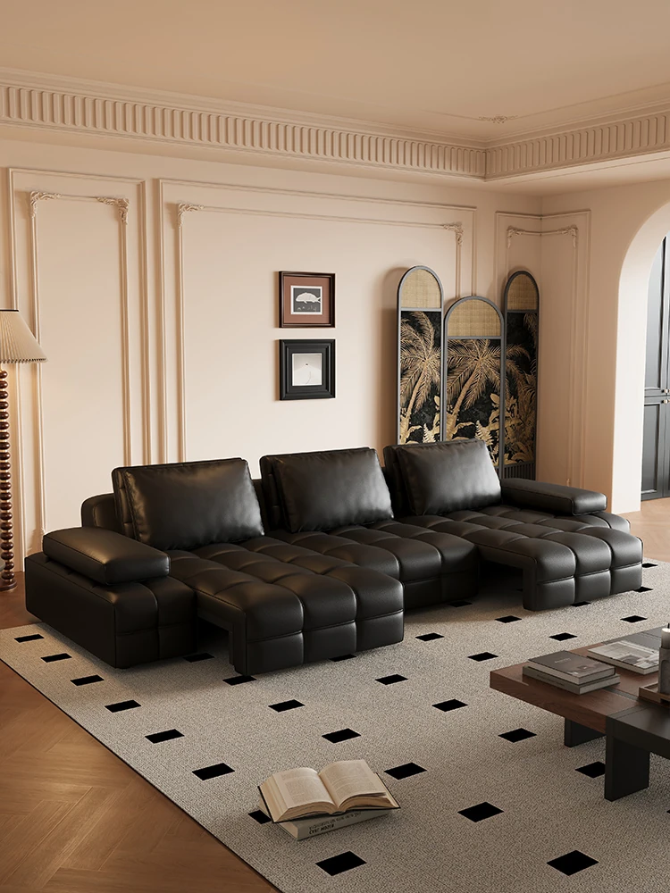 Italian Minimalist Genuine Leather Sofa for Living Room - Sleek Modern Luxury Design for Villas and Spacious Apartments - Versatile and Creative Multi-functional Sofa