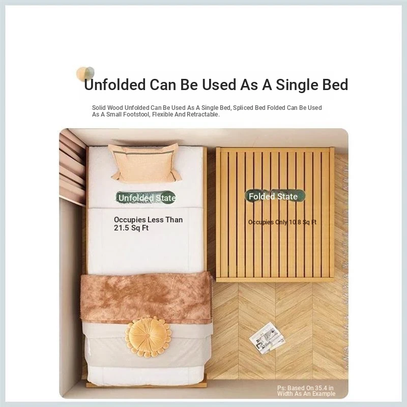 2024 New Multi-Functional Folding Sofa Bed - Trendy Space-Saving Design for Small Apartments and Balconies, Stylish Solid Wood Single Bed for Living Rooms