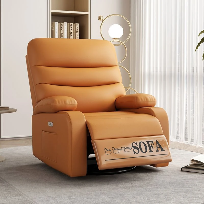 Single Lazy Electric Sofa - Real Leather Functional Couch for Small Spaces, Featuring Piano Key Design and Space Capsule Luxury Style for Your Living Room